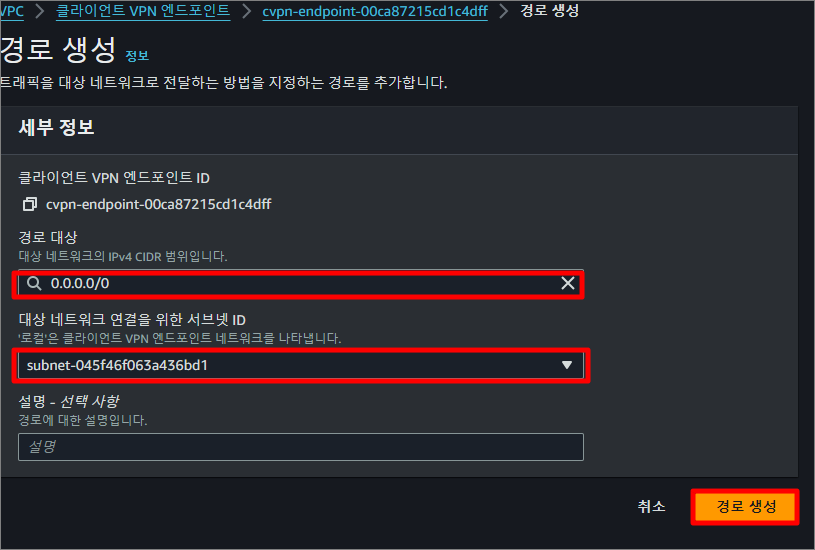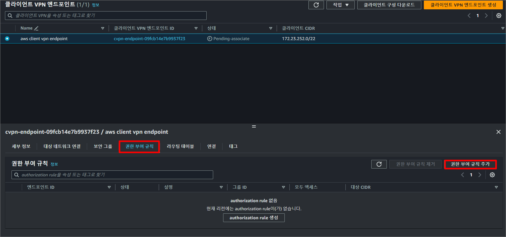 Client VPN에 접근할 수 있게끔 아래와 같이 설정합니다.