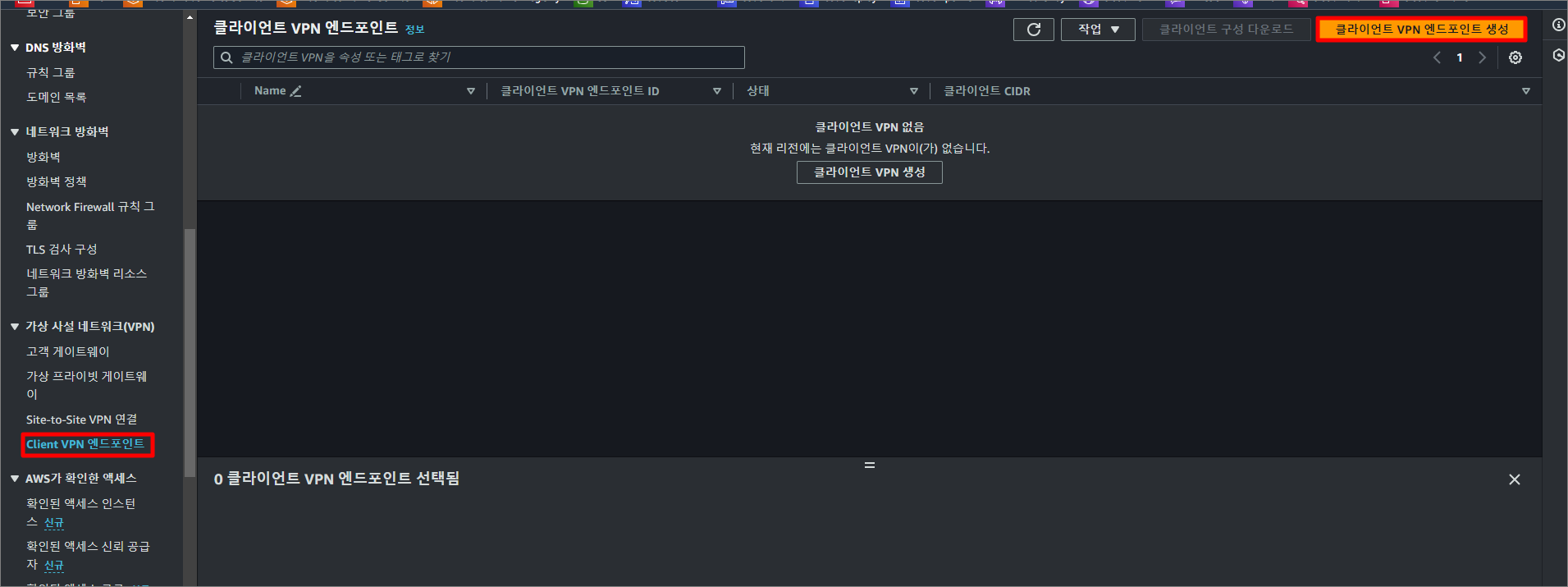 Client VPN을 생성하기 위해선 vpc와 subnet을 생성해줘야 합니다. 생성을 하셧다면 아래와 같이 진행하면 됩니다.