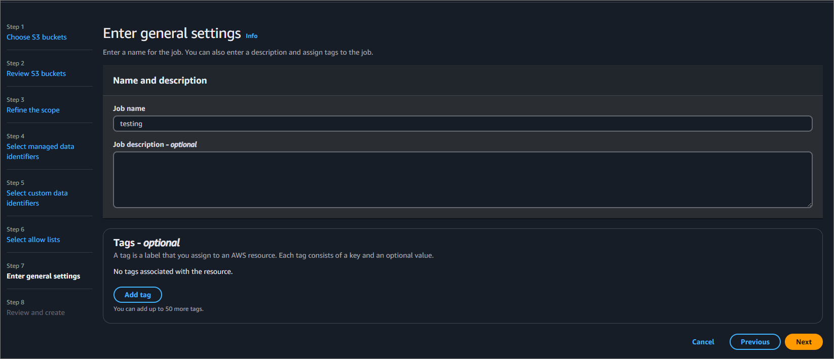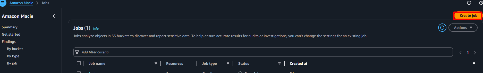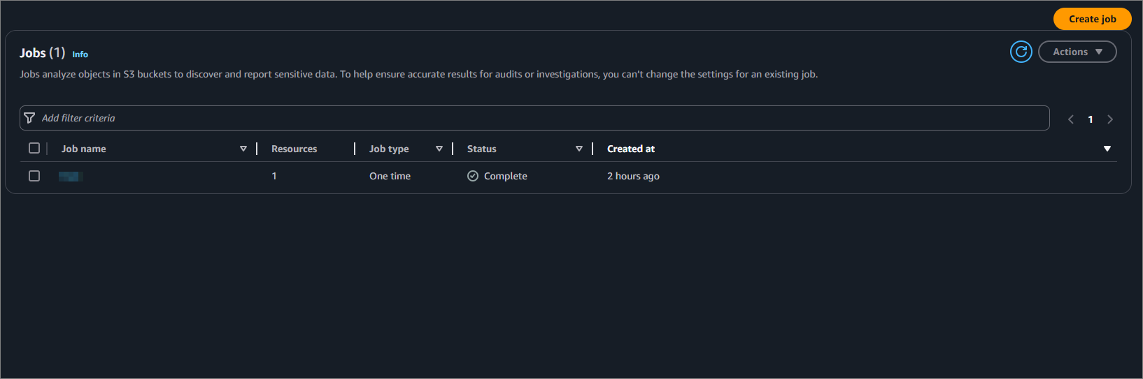 위 작업들을 마쳤다면 이제 민감한 데이터가 존재하는지 Jobs를 생성하여 확인할 수 있습니다. 아래 사진과 같이 Jobs을 생성합니다.