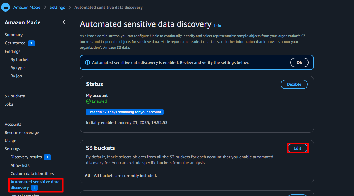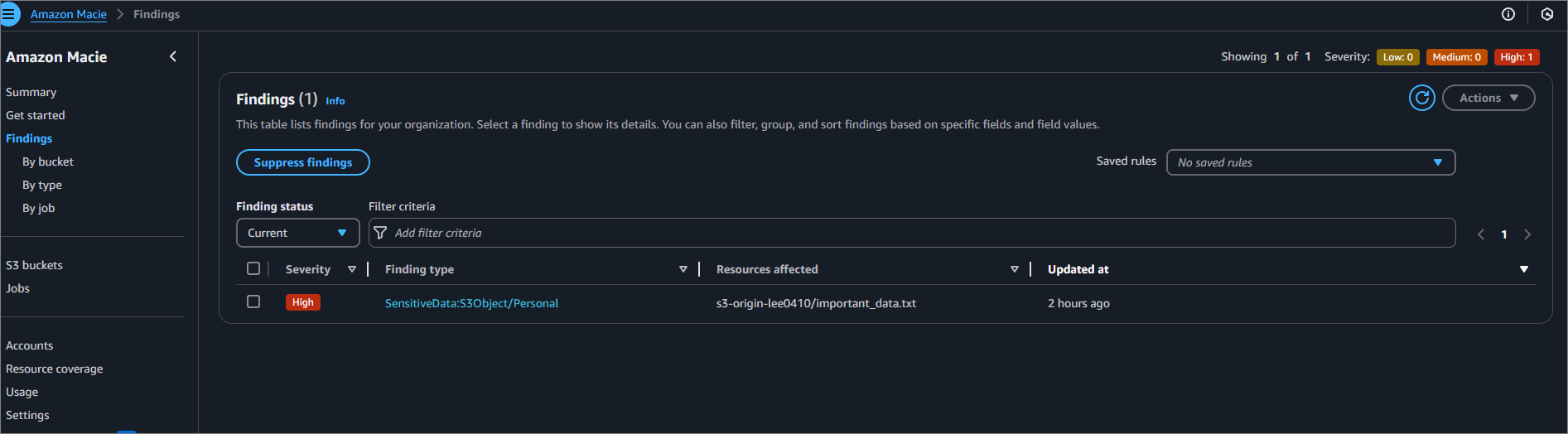 Macie를 사용하여 S3 민감한 데이터 확인