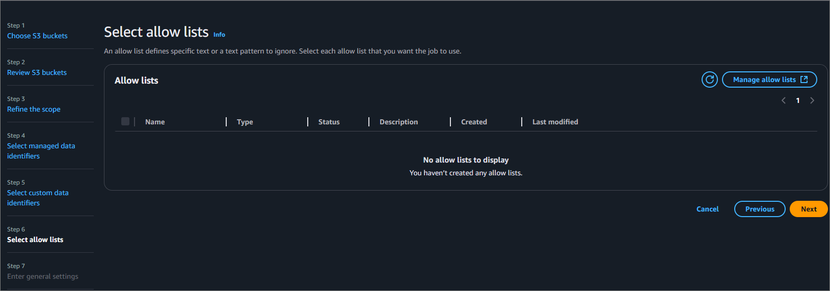Select allow lists는 탐지 제외 항목입니다. 이 기능을 사용하면 특정 데이터 값이나 형식을 민감 데이터 탐지에서 제외시킬 수 있습니다.