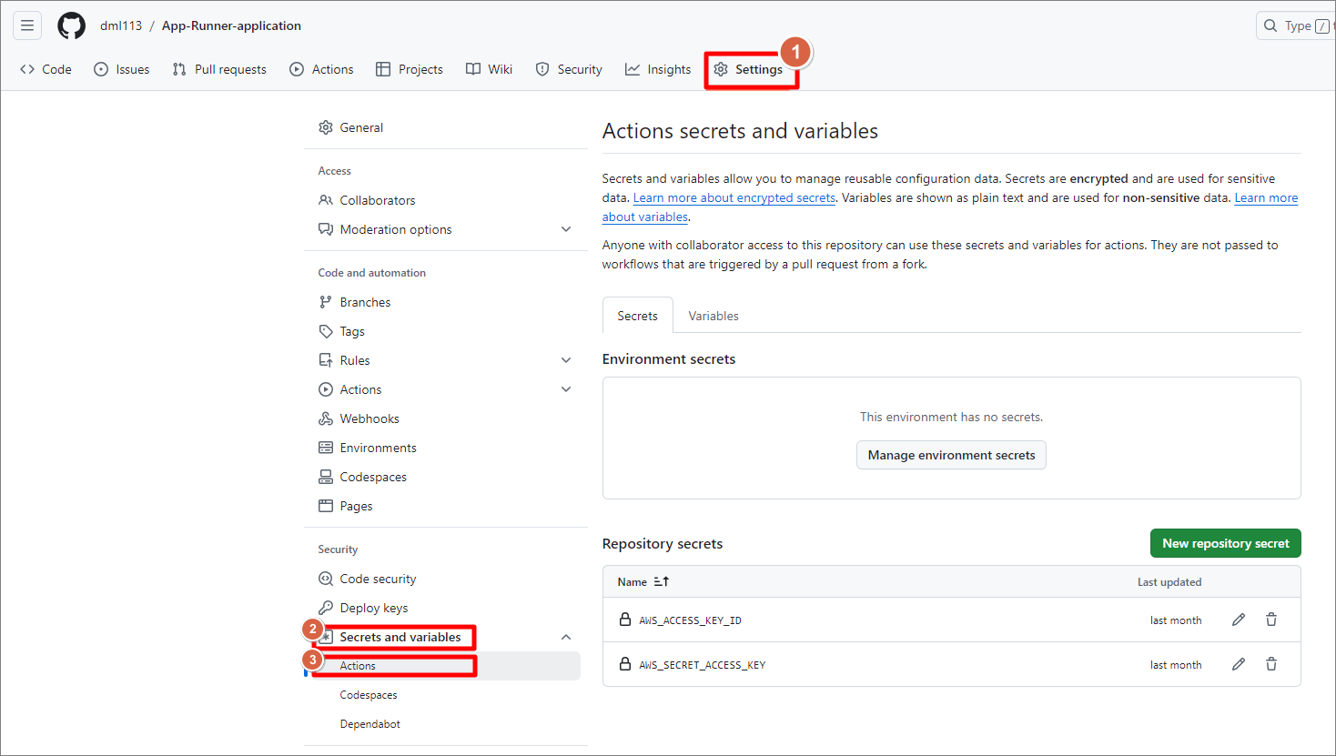 1. Environment와 Secrets 설정 위치